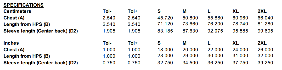 Sizing Details