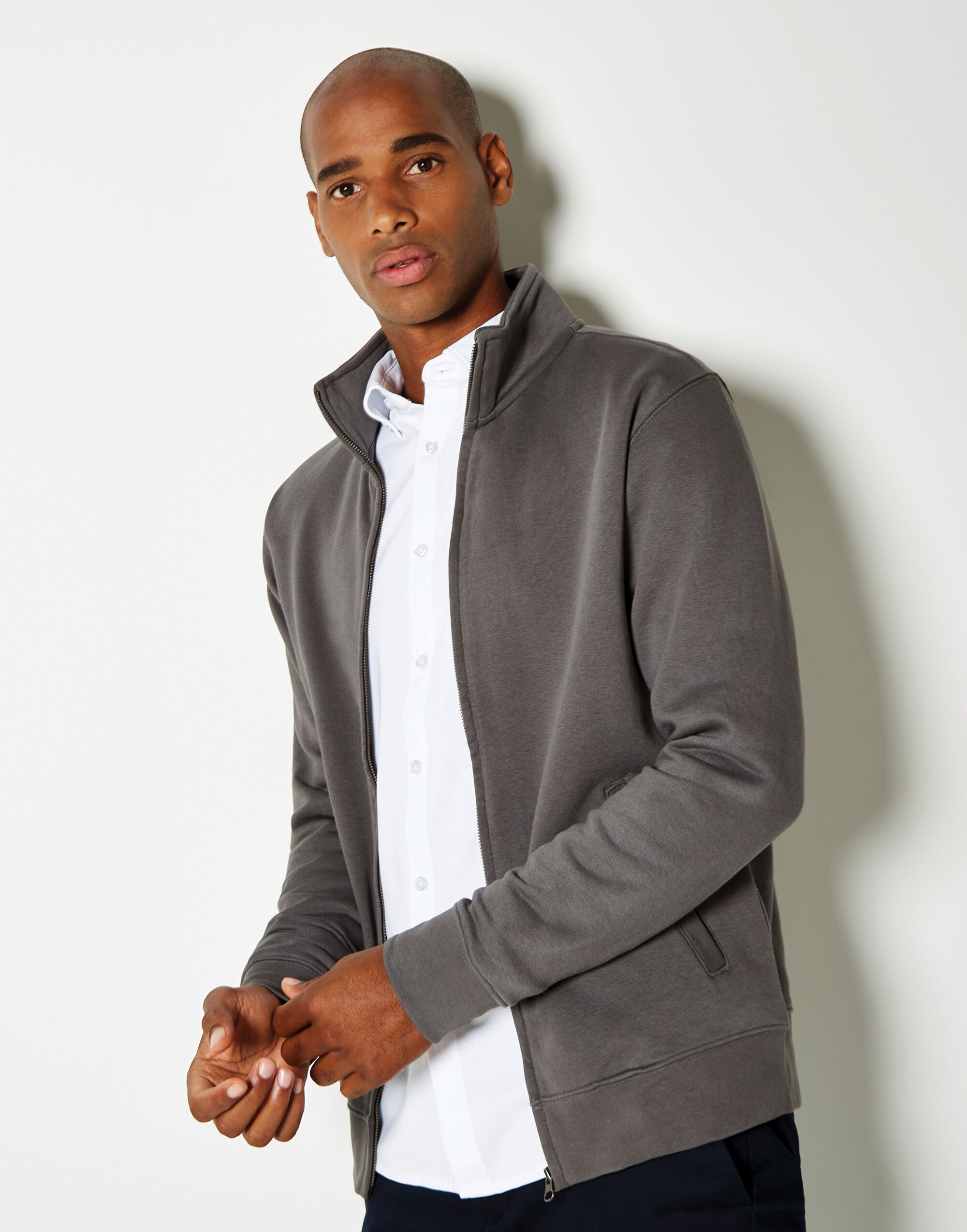 - Zipped front with double layer cadet collar