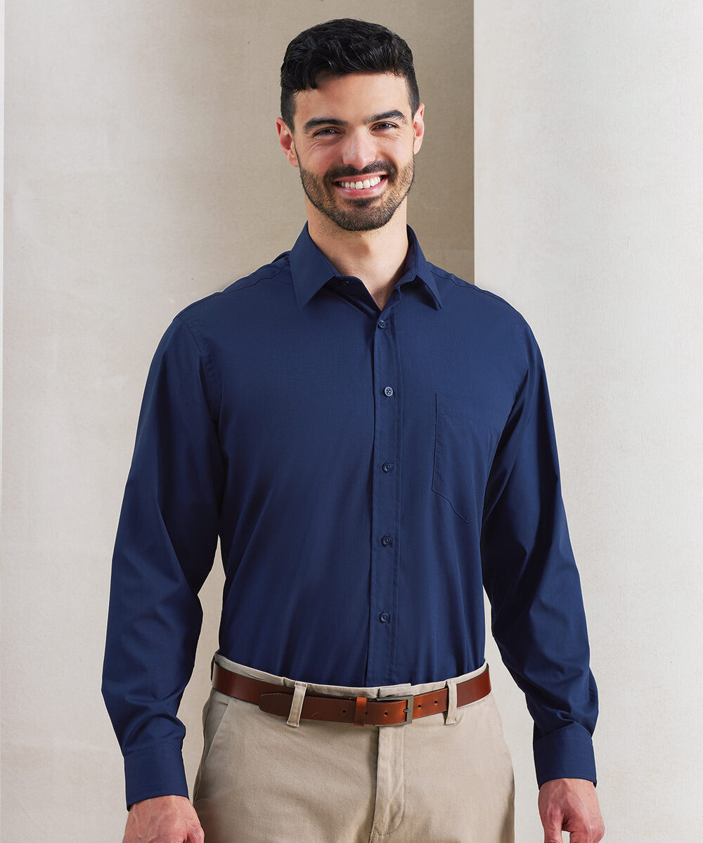 A men’s long sleeved classic fit Poplin shirt available in 27 colours from the Premier 'Colours Collection.'