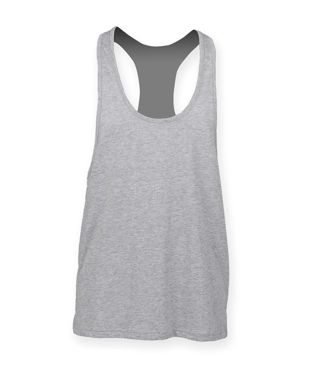 Look cool while warming up in this muscle cut racerback in an on-trend longline fit style.