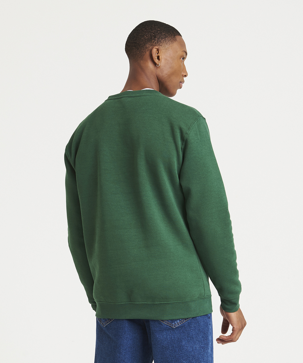 GRS Certified yarn and factory. Crew neck sweatshirt. Set-in sleeves. Taped neck. Stylish fit. Brushed inner fleece. Simple tear-out label makes it perfect for rebranding. Twin-needle stitching. Ribbed collar, cuffs and hem. Soft-cotton faced fabric creates ideal printing surface. Sedex certified. Vegan certified. WRAP certified.