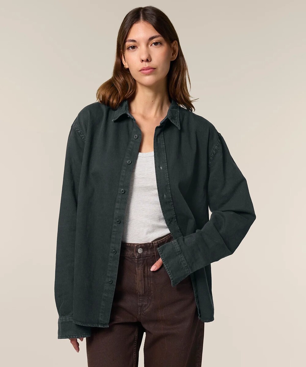 Crafted from 100% organic cotton, the Worker shirt embodies eco-friendly unisex fashion, making it an excellent choice for those seeking sustainable, workwear-inspired clothing.
