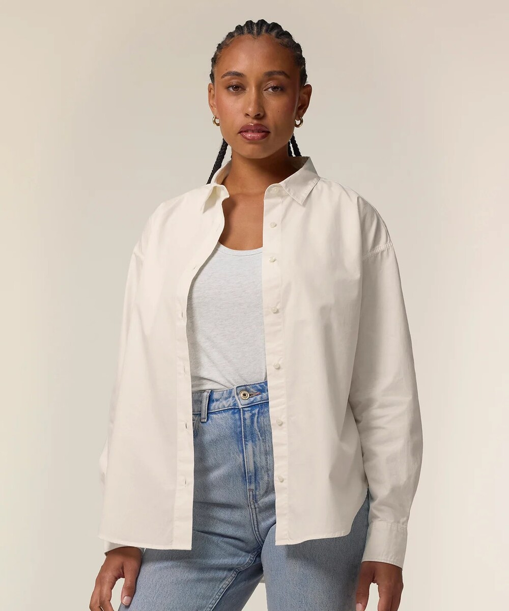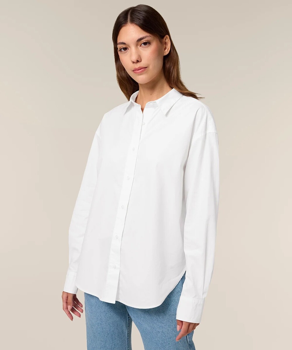 The Stella Styler shirt, for women, provides a relaxed fit in tight-weave poplin, offering a trendy retail-inspired fit.